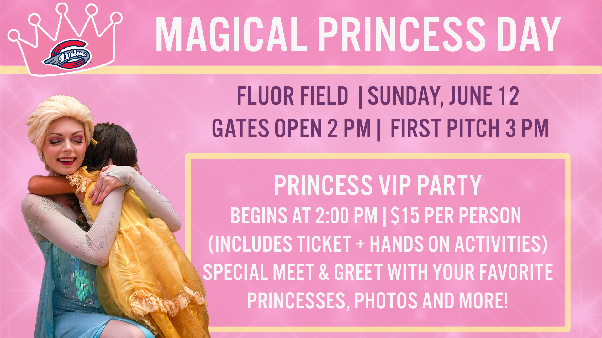 ![]() Please Join us at Fluor Field on Sunday, June 12th for a Magical day! We will have private meet & greets with your favorite princesses, cookie decorating, wand and crown crafts, dance and sing alongs, and more! Please click the link below to reserve your spot! Use code "Princess" when prompted. Get ready for the magical fun with these great new t-shirts and more! Preorder your little princess's t-shirt and pick it up on gameday during the event! ![]() |
