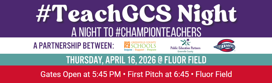 Be sure to get your commemorative #TeachGCS "Driven to Teach" t-shirt, and $5 food & beverage voucher, good at any of the Fluor Field concession stands